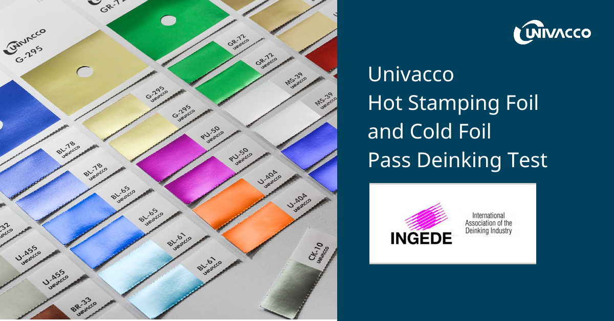Univacco passed the de-inking certification granted by INGEDE. After stamping with Univacco’s foil, papers can easily be deinked during the re-pulping process, after which the paper can be made into new paper or carton materials without any issues.