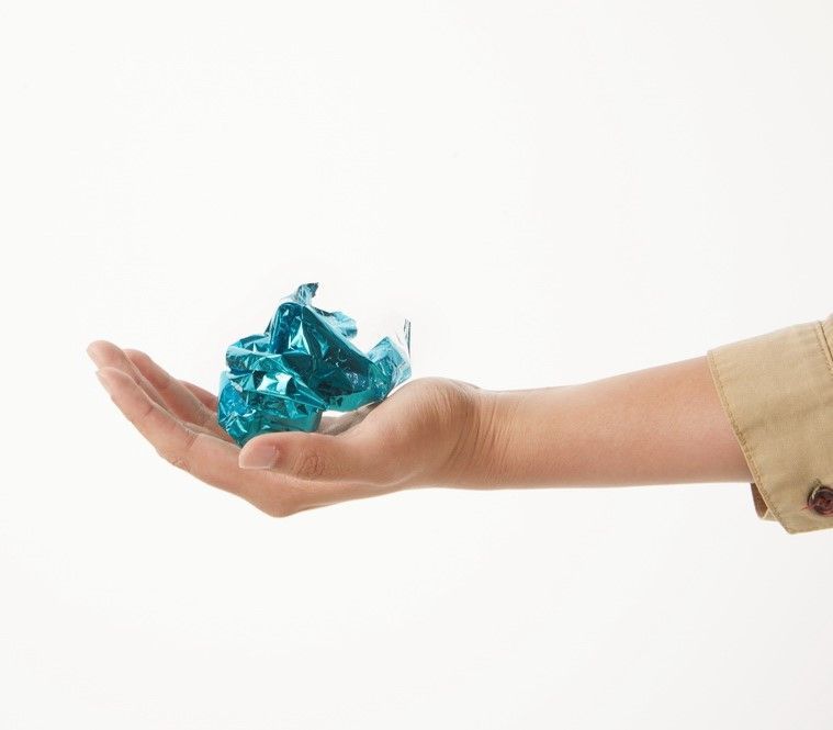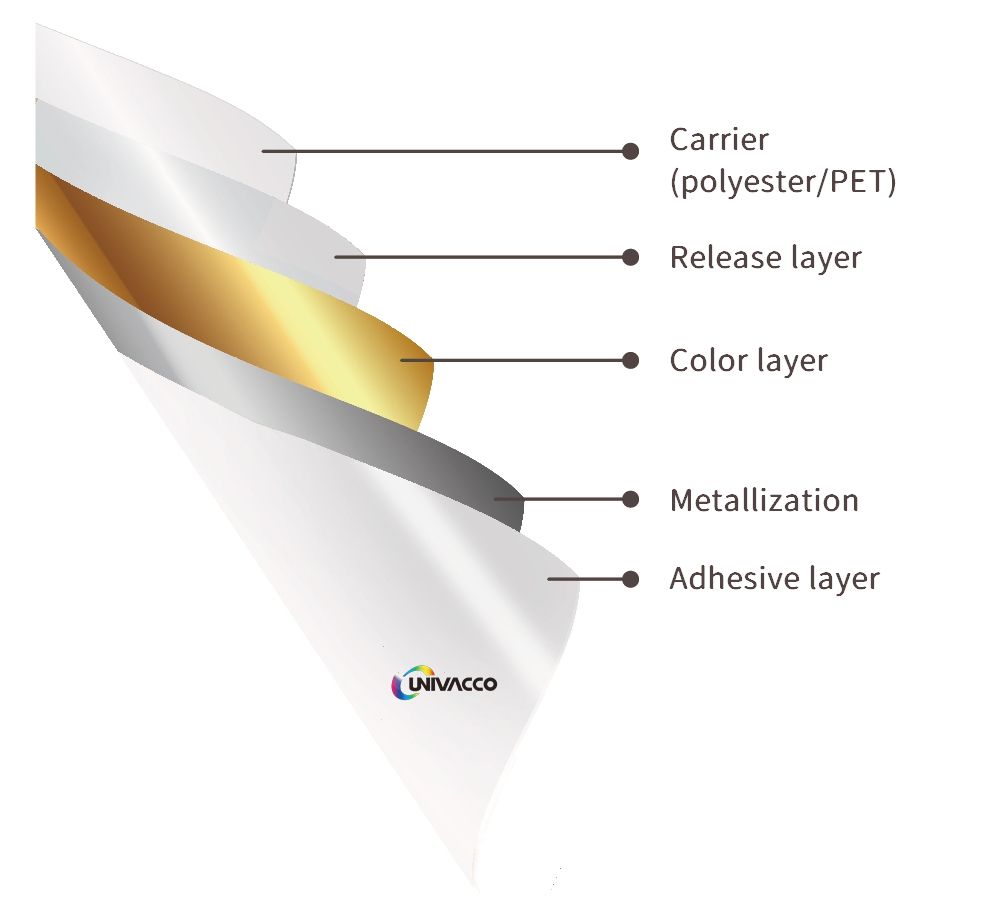 In the hot/cold foil structure, aluminum metallization on the transfer layer is extremely thin, and the coating weight is often lighter than conventional inks. After foil stamping or transferring, NO plastic residue remains on the packaging. Unlike laminating films and metallic paper, transferred foil is easily recycled.